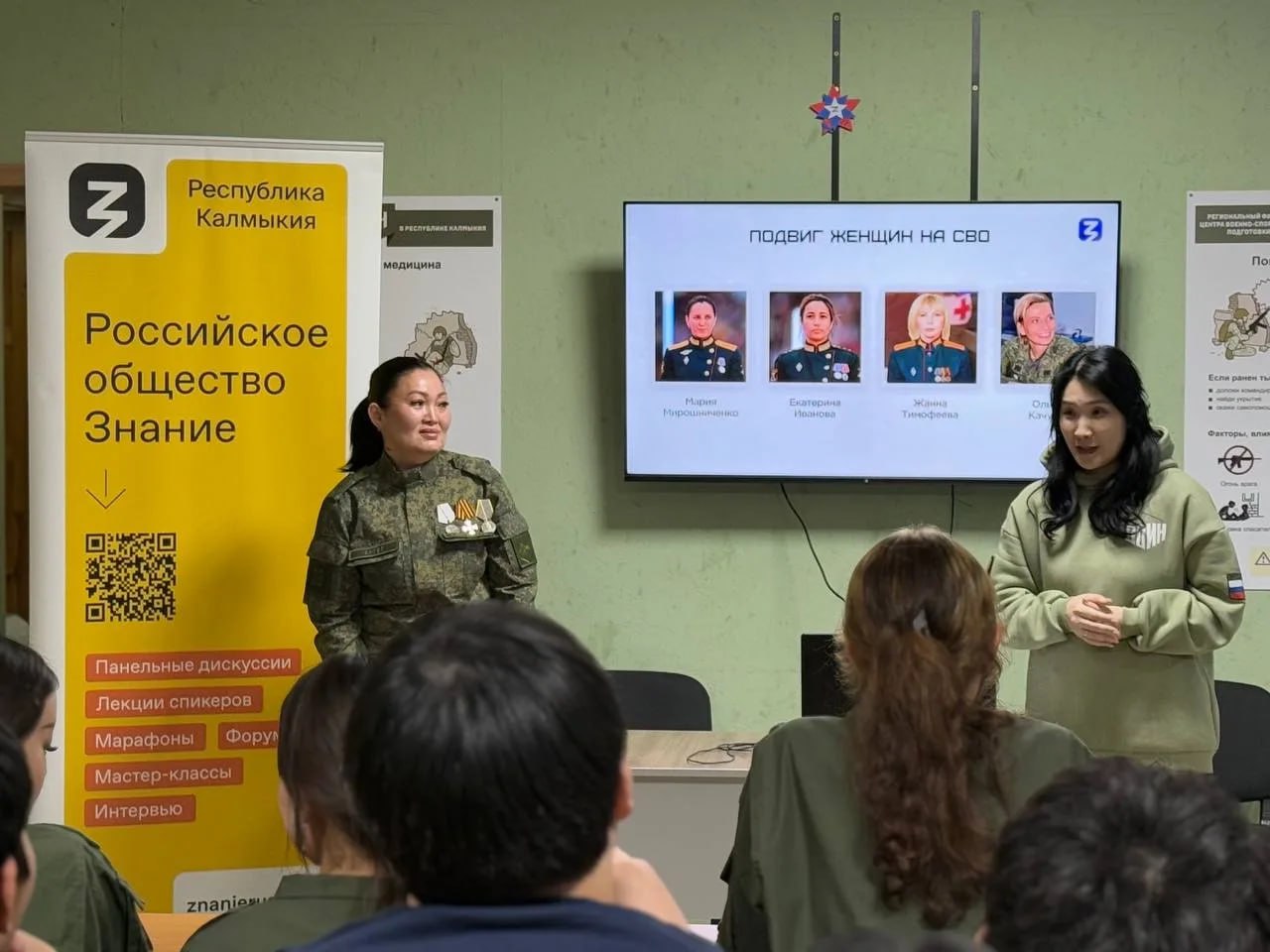 Одна из встреч прошла на площадке Калмыцкого филиала Российского государственного университета социальных технологий. Лектор Нертл Когаева рассказала о героизме женщин на фронтах Великой Отечественной войны и в период специальной военной операции, их самоотверженности и роли в тылу.