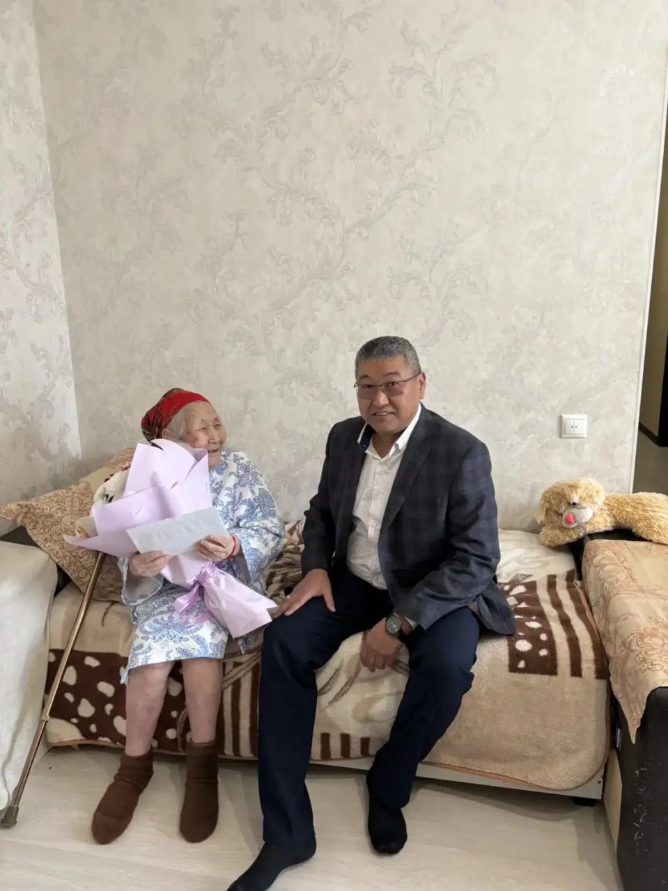 Со 102-летием ветерана поздравил депутат Элистинского городского собрания Баатр Докаев. Он передал имениннице поздравление от Президента России и подарок от муниципалитета.