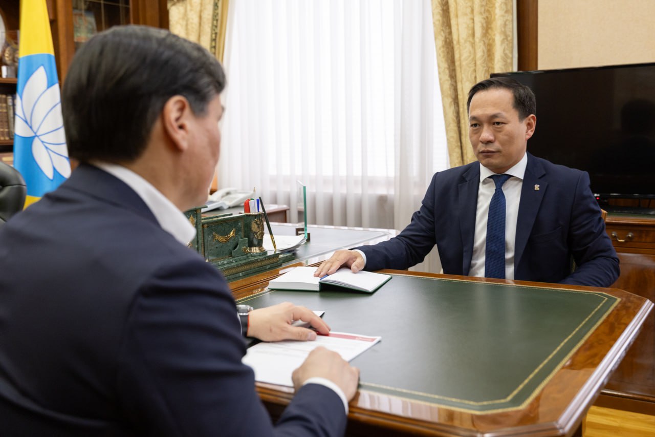 Провел рабочую встречу с временно исполняющим обязанности главы Целинного района Басангом Анатольевичем Убушаевым