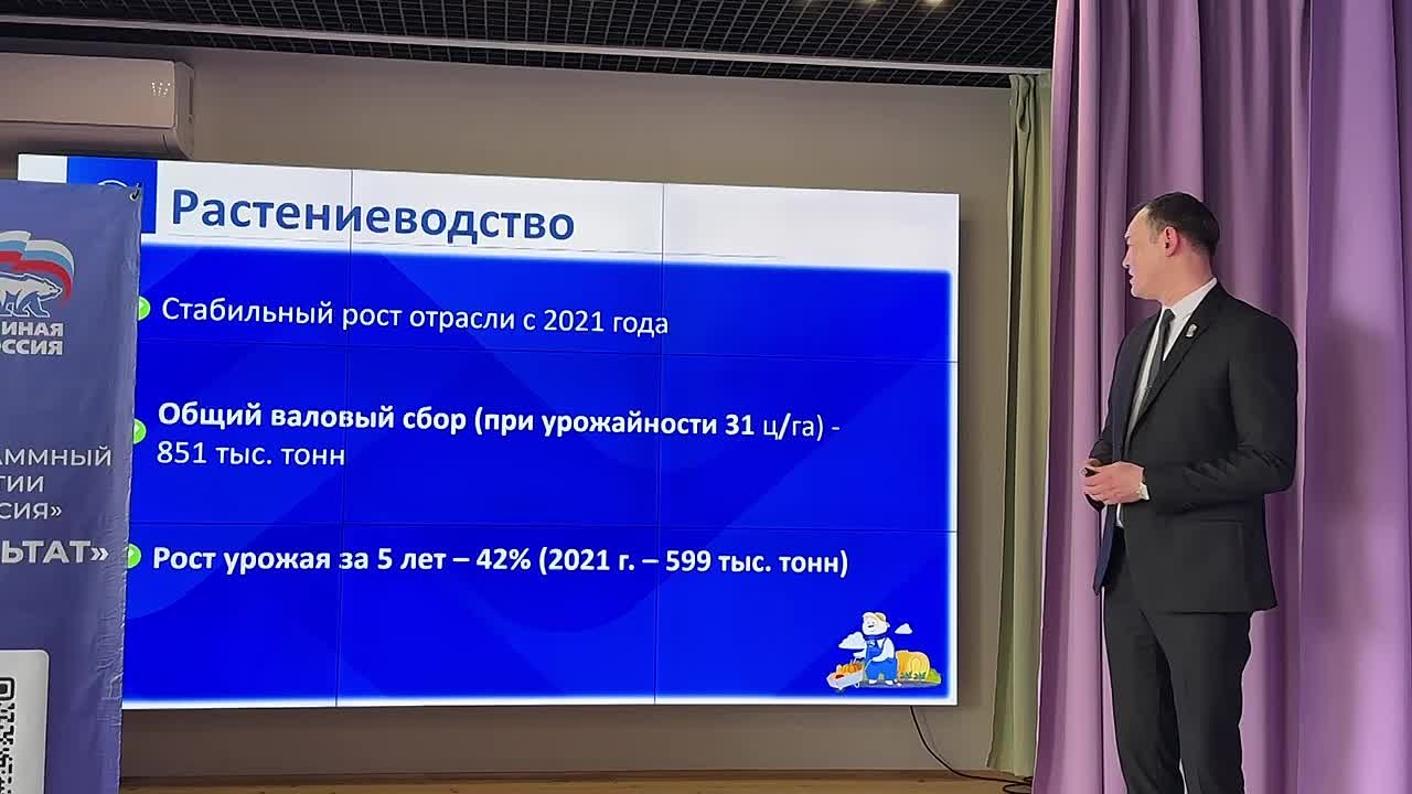 В сфере растениеводства с 2021 года наблюдается стабильный рост отрасли. Общий валовый сбор при урожайности 31 ц/га составил 851 тыс. тонн.