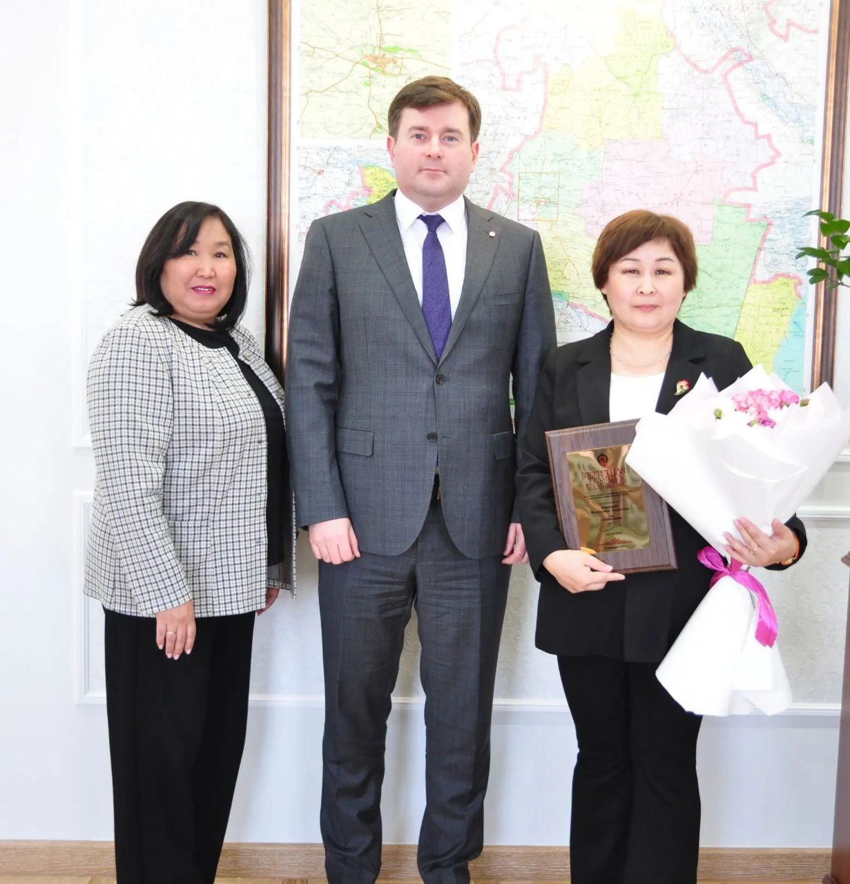 Почетную награду вручил руководитель Администрации Главы Республики Калмыкия Кирилл Дмитриевич Попов и пожелал дальнейших успехов в работе.