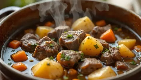 Жаркое по-домашнему с говядиной и картошкой — это настоящий символ уюта и традиционного обеда в русской кухне. Ароматное и сытное блюдо, которое часто напоминает о тихих семейных вечерах, где за столом собрались родные и близкие.
