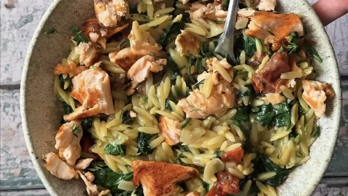 Само по себе орзо — это кулинарный уют, который согревает, как мягкий плед. Нежная паста, солоноватый пармезан, яркие вяленые томаты и сочный лосось создают идеальную гармонию. Простота в приготовлении и эффектная подача делают его отличным выбором для романтического ужина или трапезы наедине с собой.