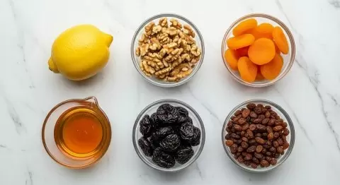 Важно также перебрать грецкие орехи, удаляя твердые перегородки, и тщательно промыть лимон, избавившись от косточек, чтобы избежать горечи.