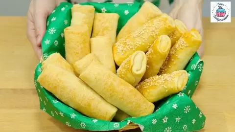 Шарики теста раскатываются в тонкие пласты. На одну половину каждого пласта кладется столовая ложка начинки. Затем тесто аккуратно сворачивается в рулет, но не слишком туго, чтобы в процессе выпекания пирожки хорошо поднялись и стали слоистыми.