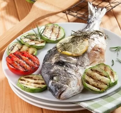 - Приготовление: Очистить рыбу, разогреть гриль и смазать его растительным маслом. Полить рыбину лимонным соком, натереть зеленью и специями, затем обмазывать маслом и оставить на 5 минут. Готовить по 5-7 минут с каждой стороны.
