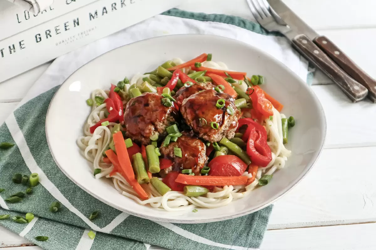 Приготовление лапши: В кастрюле доведите до кипения полтора литра воды, добавьте соль и опустите в нее удон. Варите 3-4 минуты, затем откиньте на дуршлаг. Подавайте лапшу с фрикадельками и овощами, полив устричным соусом. Это придаст блюду неповторимый вкус!