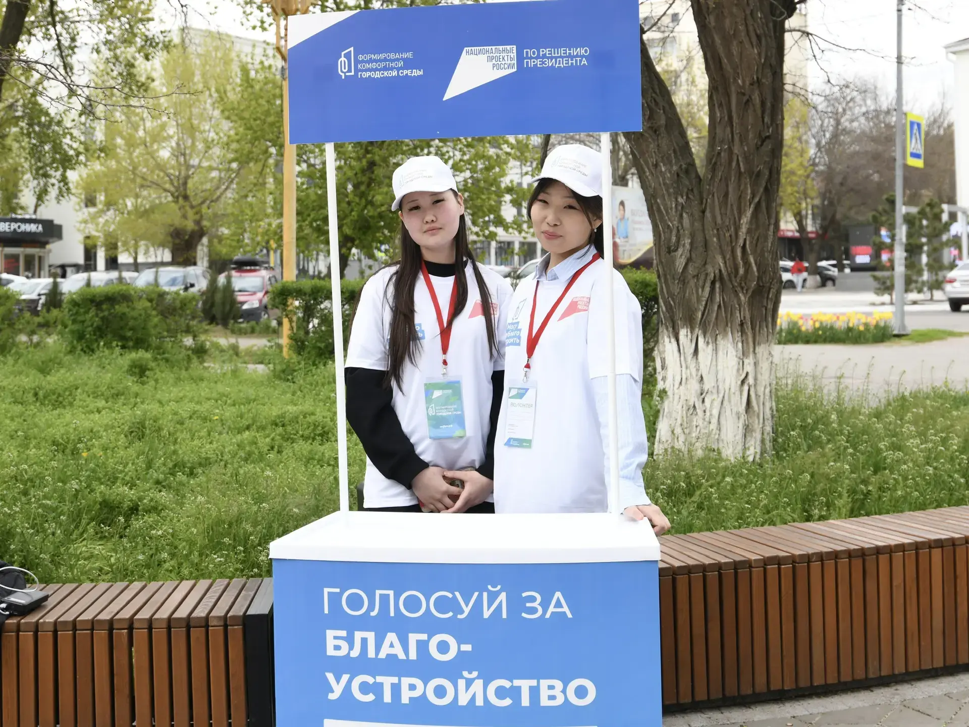 Параллельно работали волонтеры благоустройства, которые помогали жителям города проголосовать за общественные территории Элисты, которые будут благоустроены в следующем году: