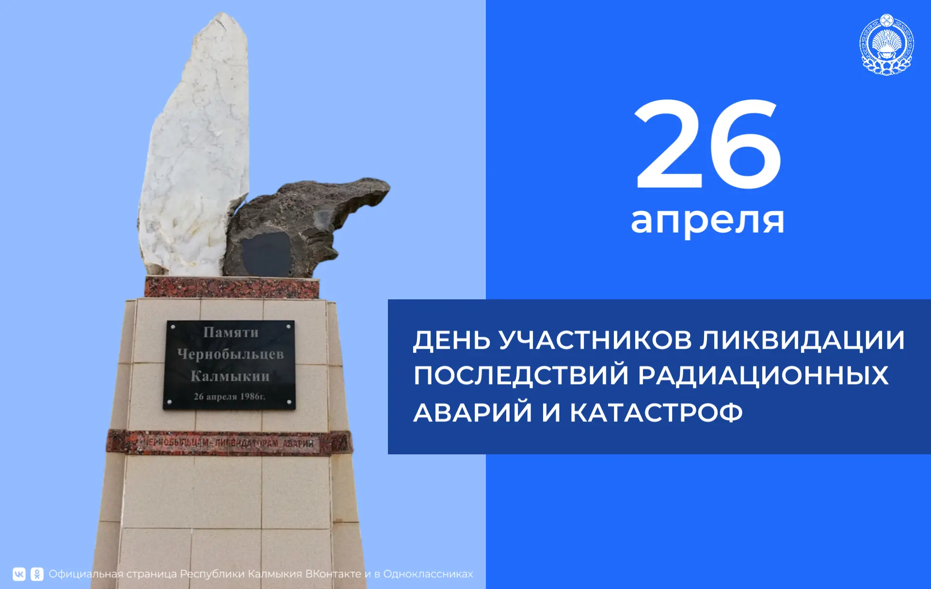 В числе тех, кто был привлечен к ликвидации последствий аварии, и 1670 жителей Калмыкии, большинство из которых получили серьезный ущерб здоровью и спустя годы умерли от тяжелых заболеваний. Сегодня в Калмыкии проживает несколько сотен чернобыльцев, кому оказываются различные меры государственной поддержки, многие из них нуждаются в постоянном лечении и социальном уходе. Наша святая обязанность – помнить о подвиге мужественных земляков-ликвидаторов, окружать их вниманием и заботой.