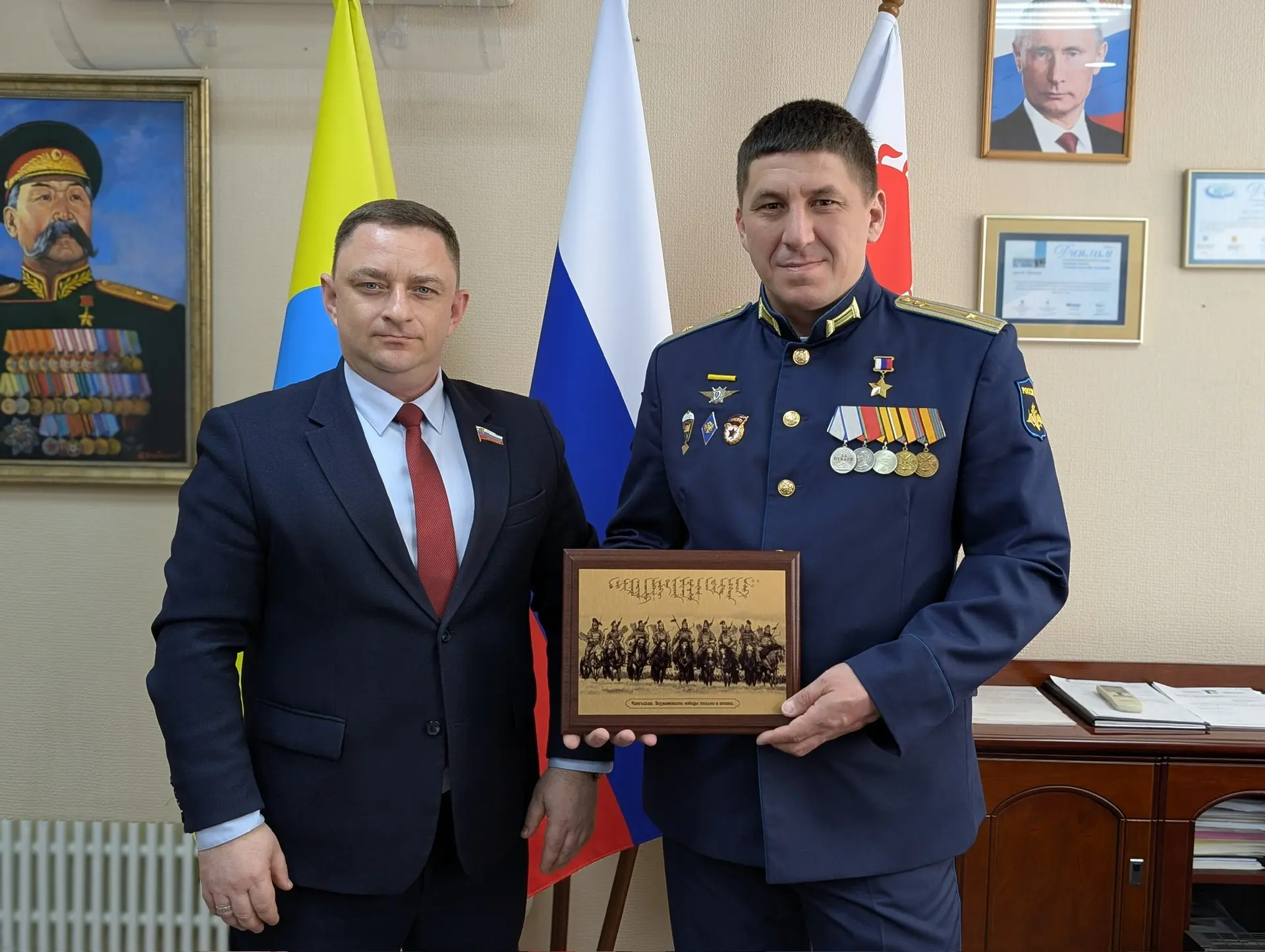 В День российского парламентаризма Глава города - Председатель #ЭГС Максим Сорокин провёл рабочую встречу с депутатом Законодательного собрания Севастополя, Героем России Романом Кулаковым. В центре внимания — вопросы законодательной работы, направленной на защиту прав участников #СВО и их семей.