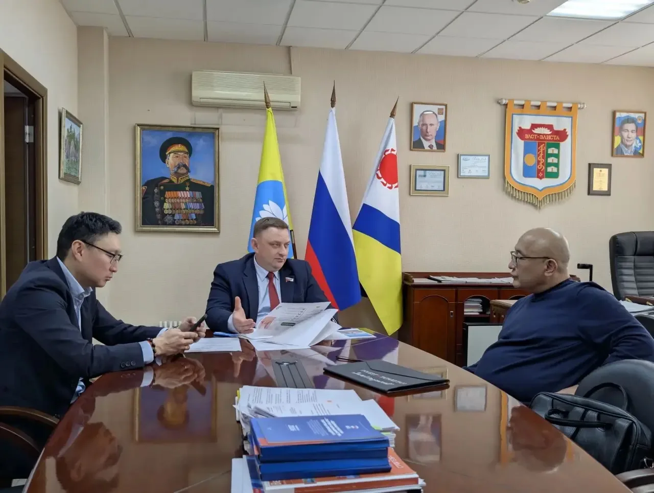 Возможность создания в Элисте реабилитационно-образовательного центра тибетской медицины Глава города - Председатель #ЭГС Максим Сорокин обсудил с Саналом Насуновым, заведующим кафедрой традиционной тибетской медицины Университета здоровья БРИКС.