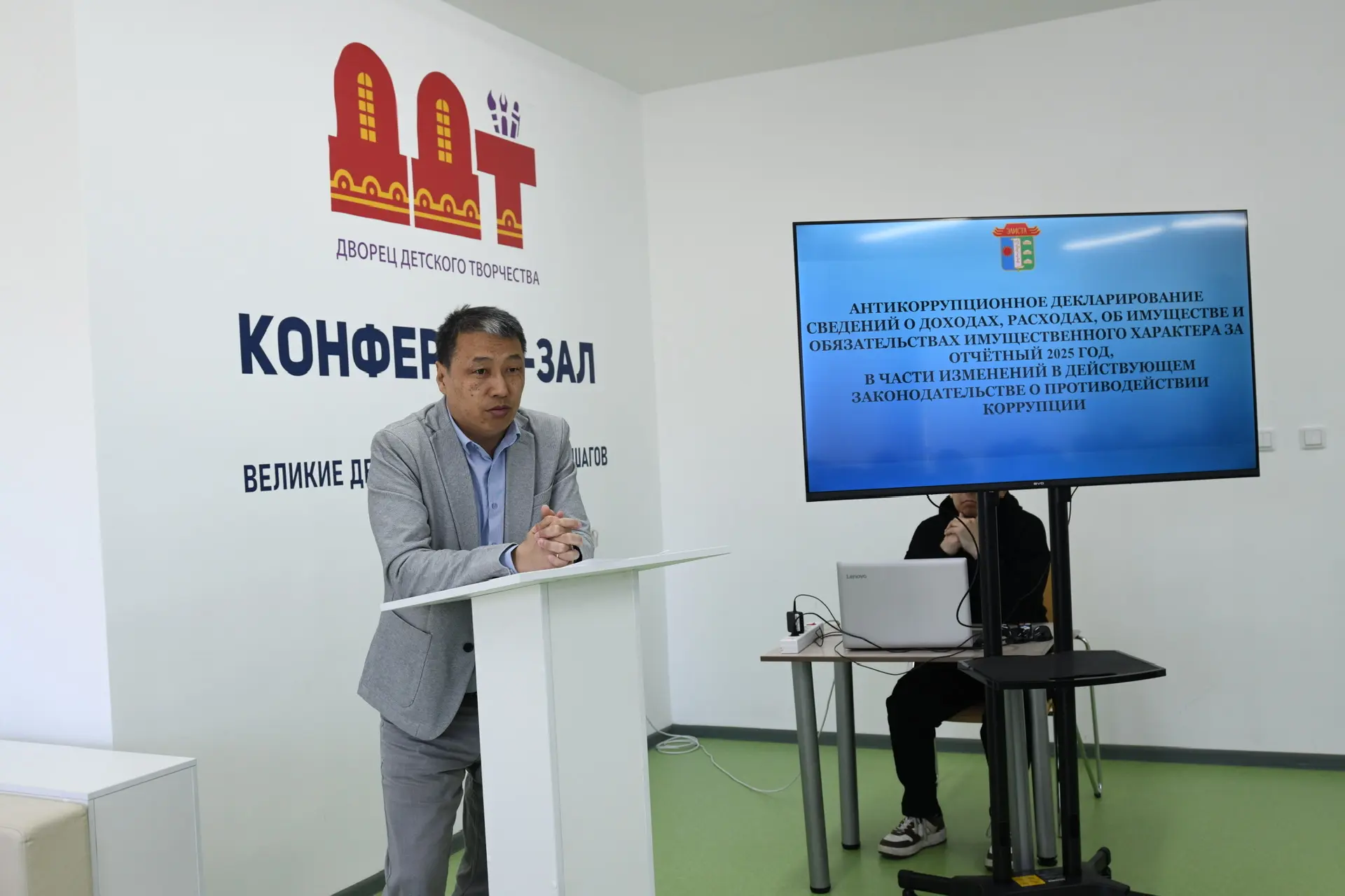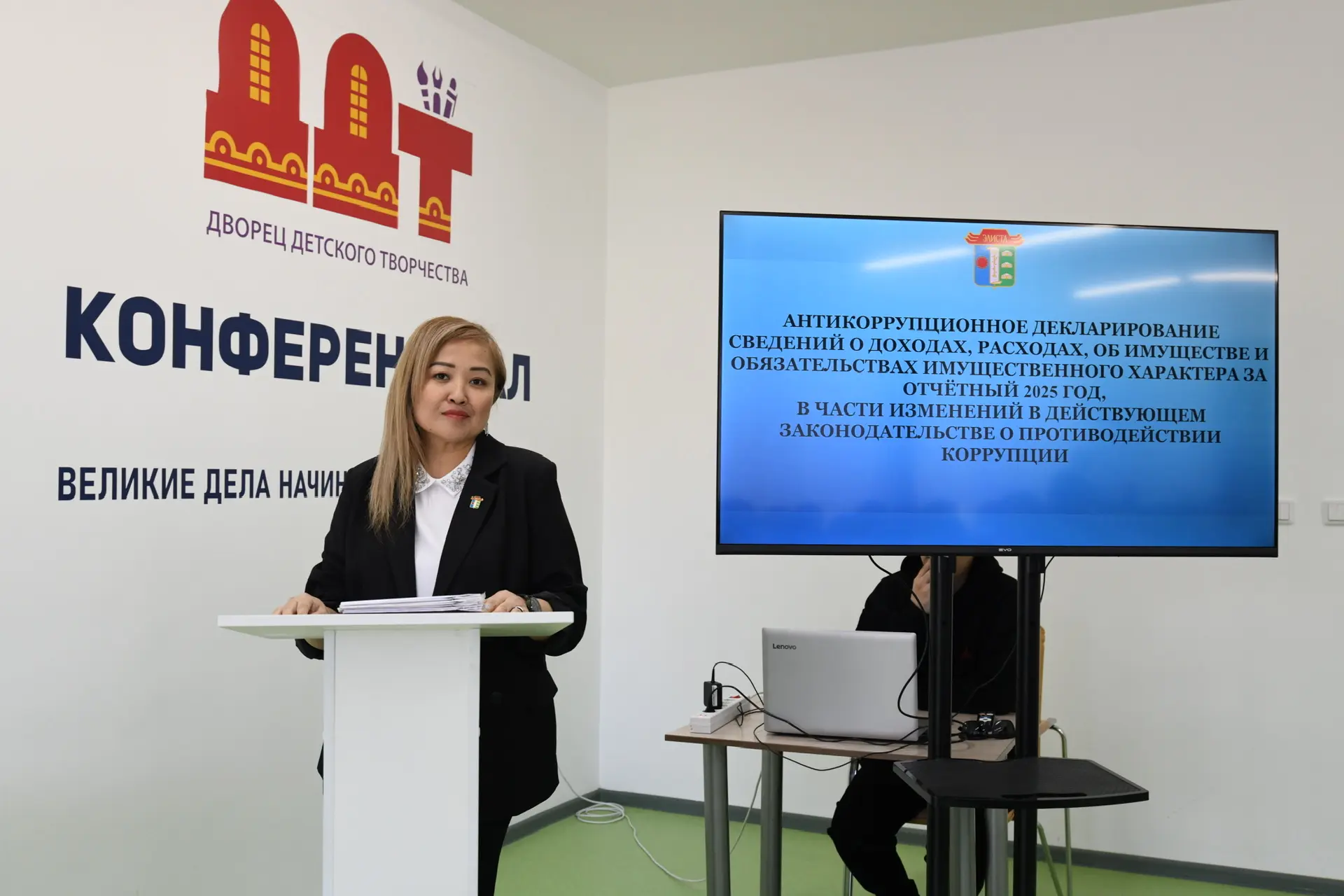 Начальник отдела муниципальной службы и кадрового обеспечения Гана Опуева выступила с докладом по антикоррупционному декларированию сведений о доходах, расходах, об имуществе и обязательствах имущественного характера за отчетный 2025 год, в части изменений в действующем законодательстве о противодействии коррупции.