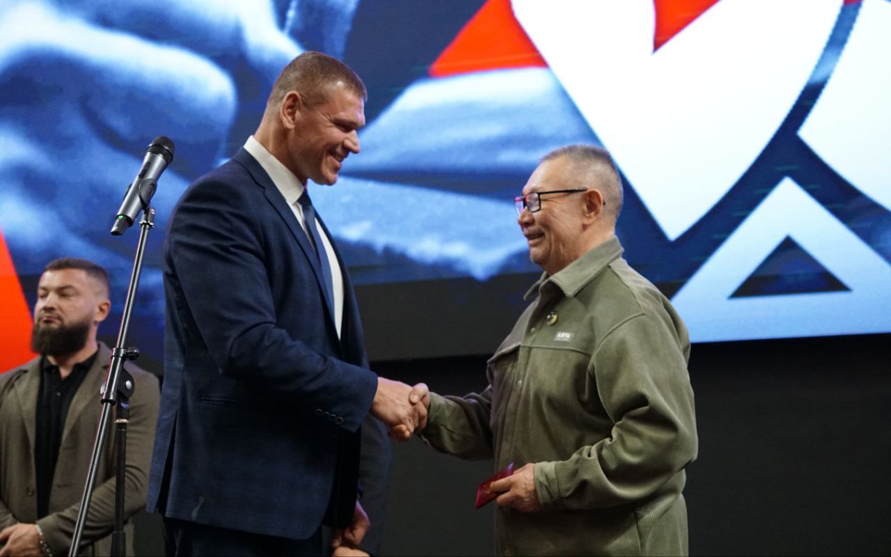 На торжественном открытии Генеральный секретарь Федерации армрестлинга России Гузев Антон Михайлович наградил почётного президента армрестлинга Республики Калмыкия Батырова Геннадия Константиновича Почётным знаком за заслуги в развитии физической культуры и спорта.