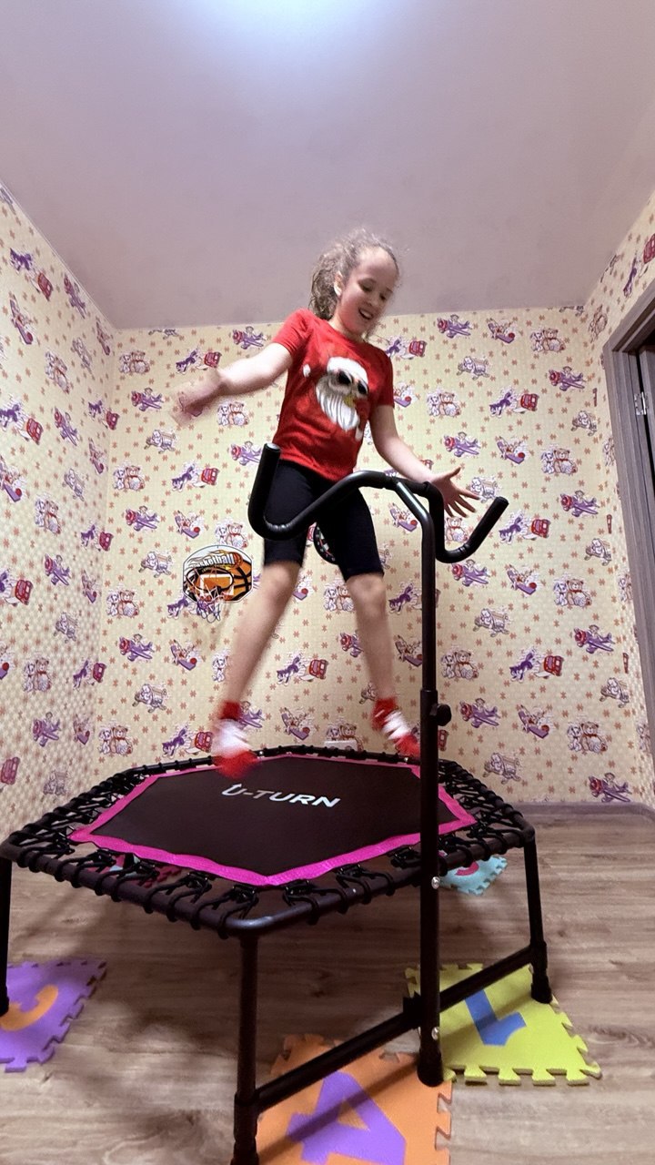 Девочка мечтала о батуте для джампинга.