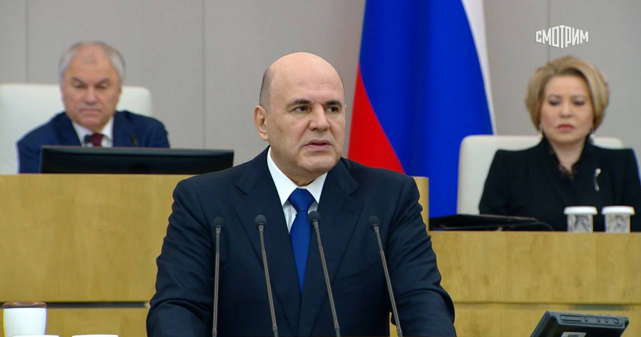 Премьер РФ Михаил Мишустин выступает в Государственной Думе с ежегодным отчетом о работе правительства.